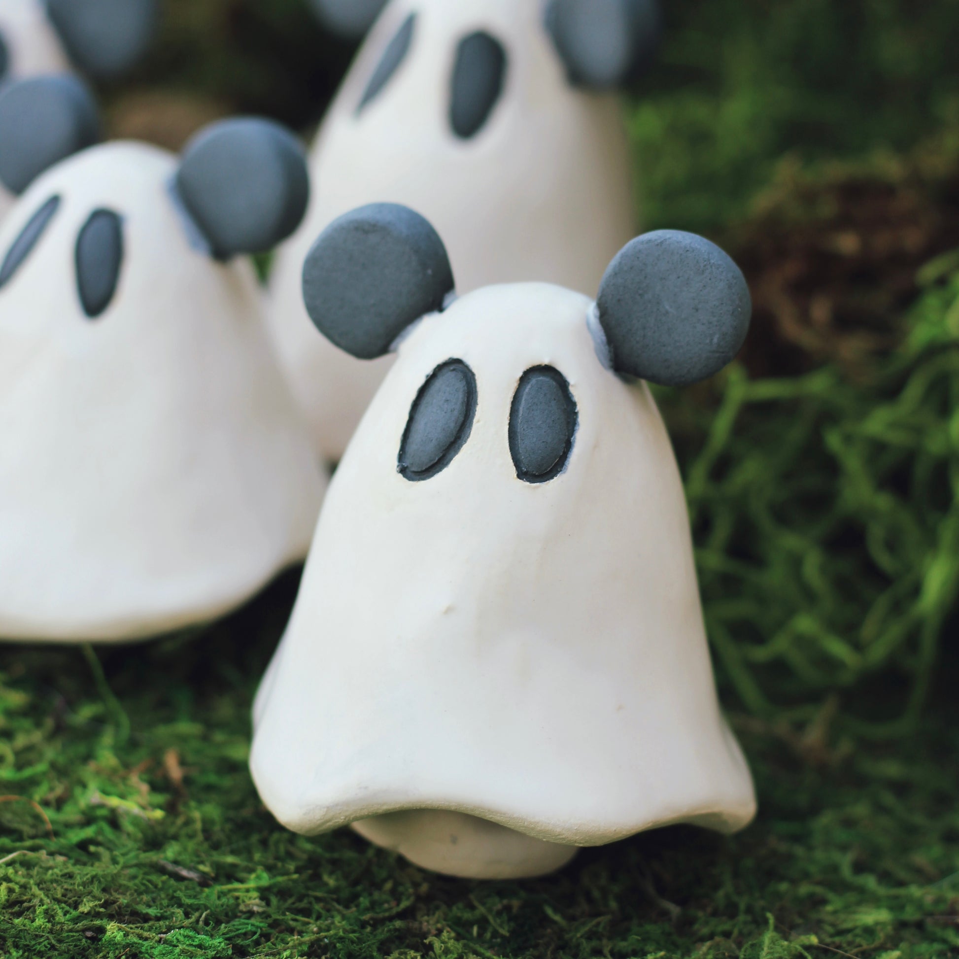 Ghosts have a matte finish and range in size from 2.5-3 inches in height. All ghosts have a post in which they balance on.