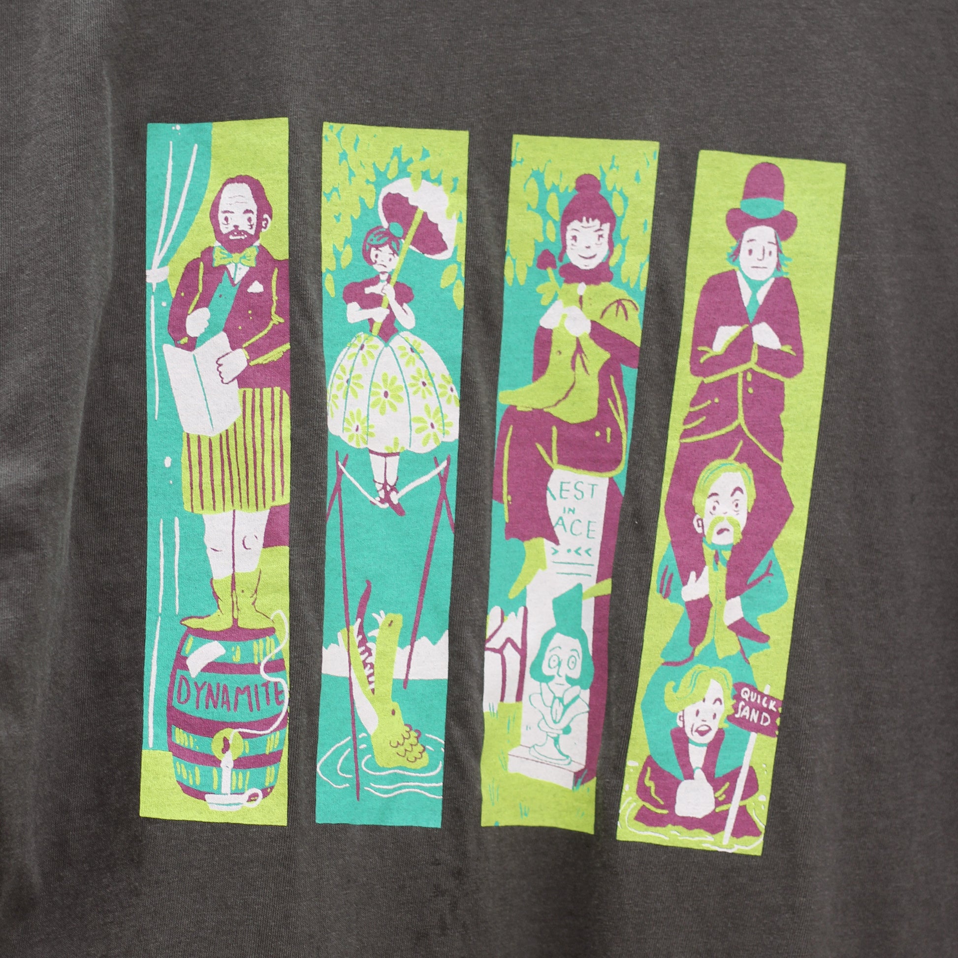 These tees are screen printed locally in Salt Lake City by a small business on gray garment dyed tees to give them a vintage feel.