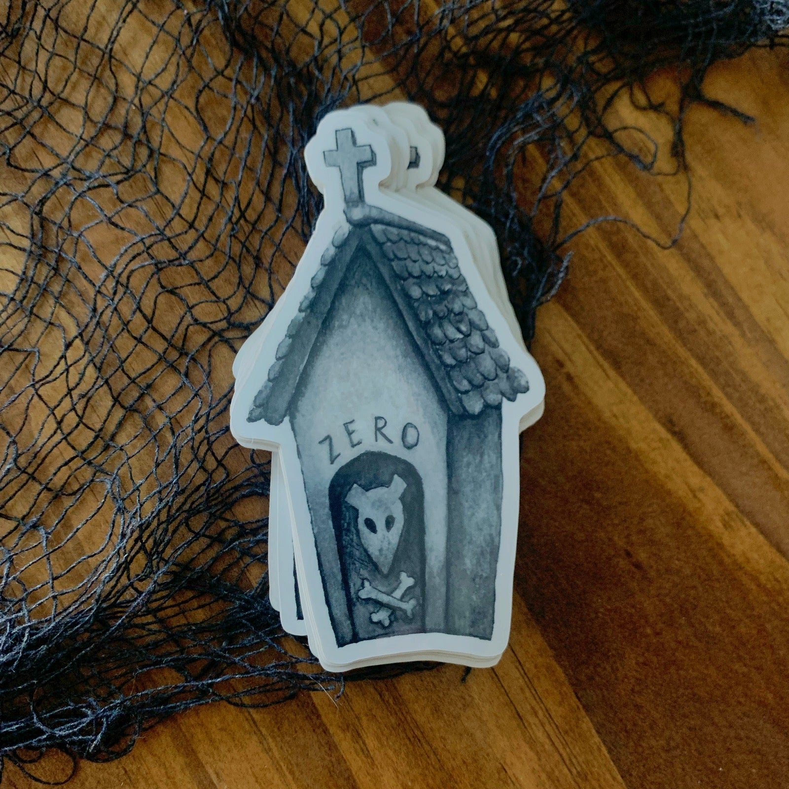 We just love the happiest ghost pup so much we had to make a sticker of his cute little house! These 2.2" by 4" vinyl stickers are scratch and weatherproof.