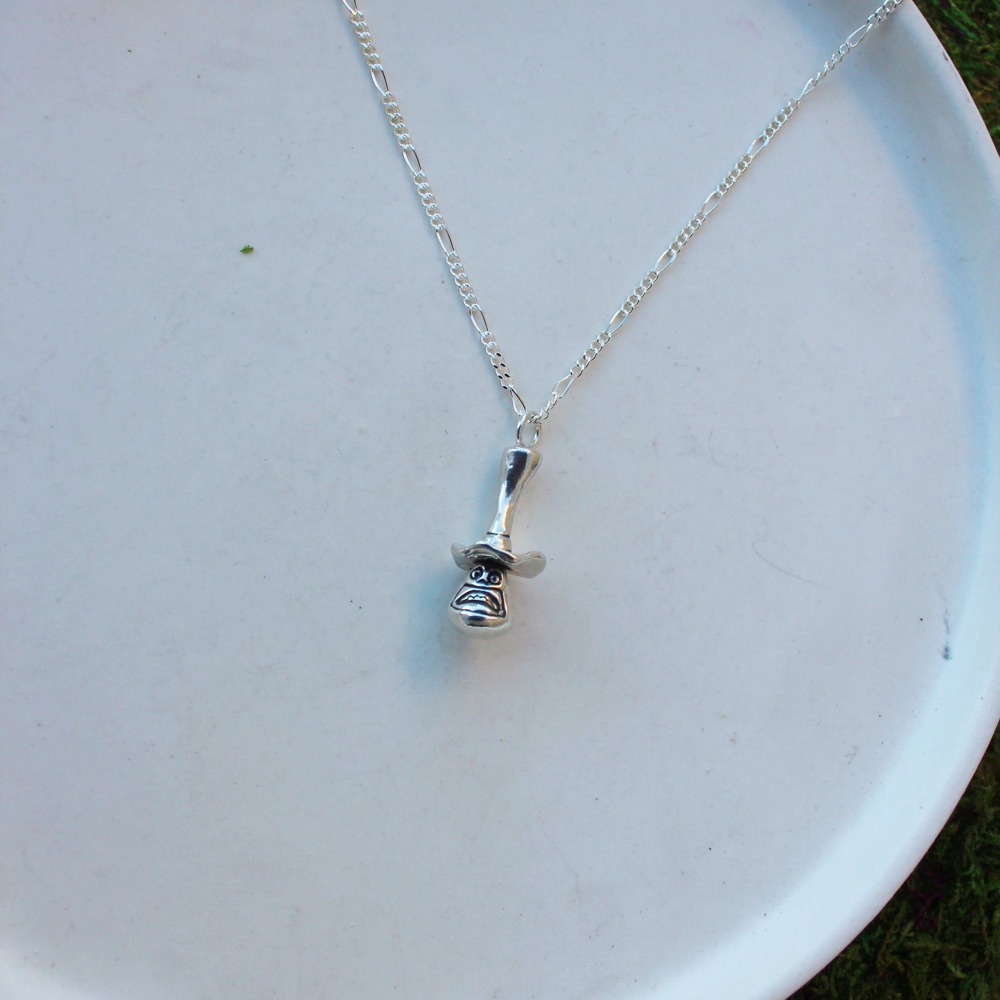 This piece is hand carved and cast in solid silver at our studio in Utah. The silver is blackened with liver of sulfur and coated in jewelers wax to preserve the color. This pendant is approximately 20 mm in diameter. Customize your pendant with style options; cable chain, beveled long and short, and cable with bead and 16", 18", 20", 22", or 24" length variations.
