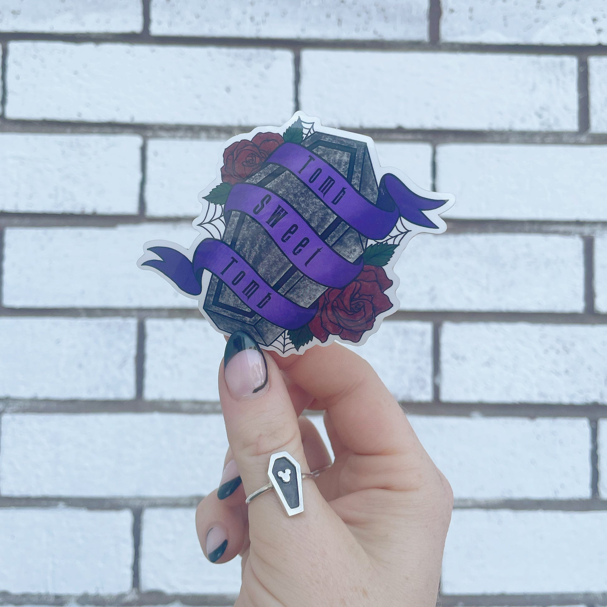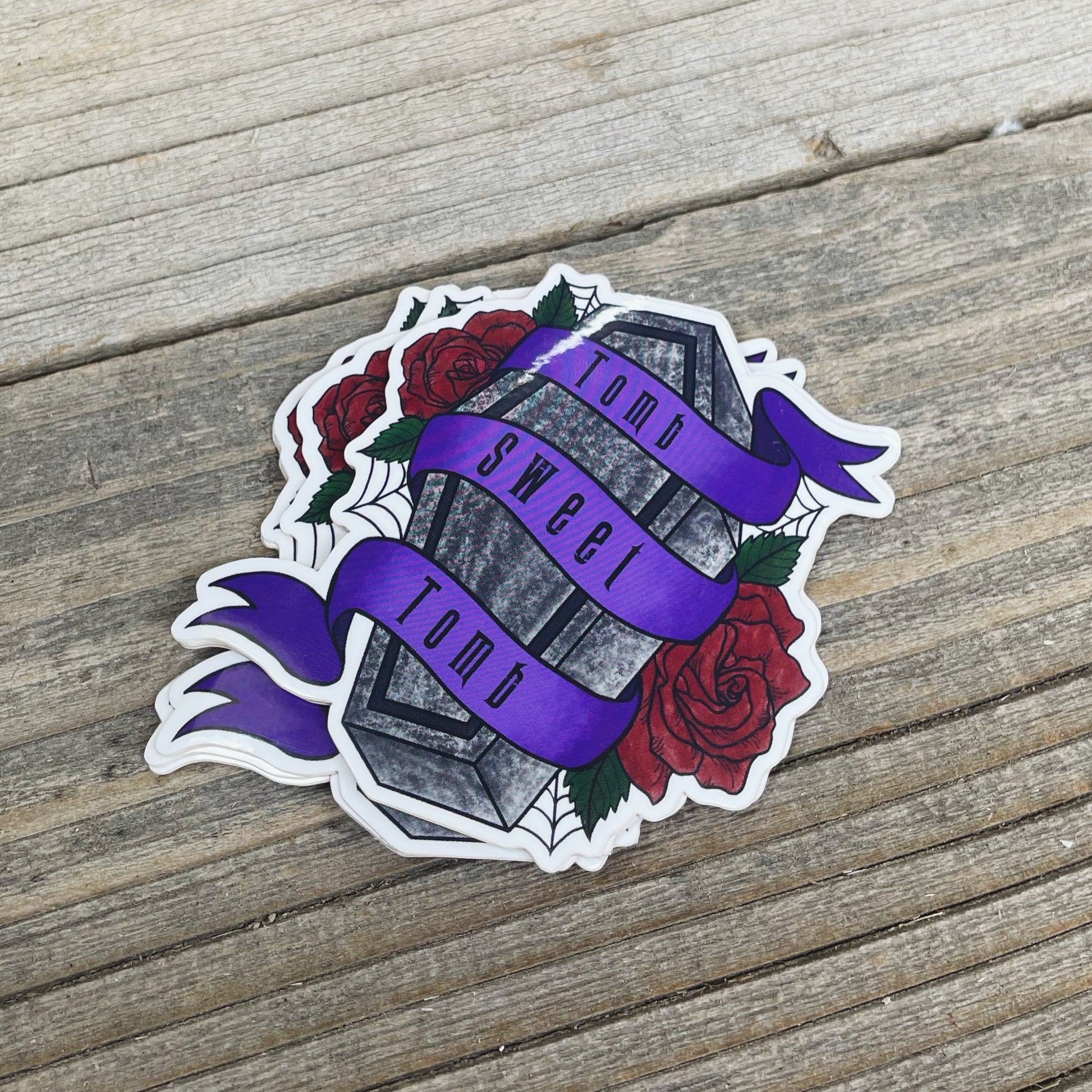 Our Tomb Sweet Tomb Sticker is to die for. This vinyl sticker is perfect for your water bottle, laptop or anywhere else you can think of! These 2.5" by 3" vinyl stickers are scratch and weatherproof.
